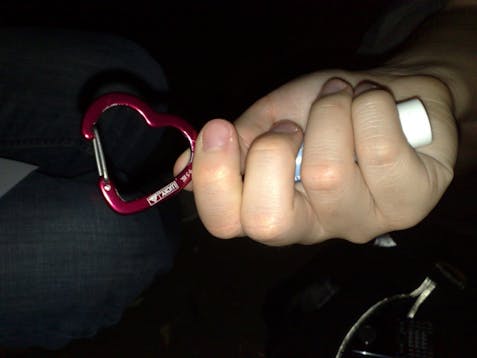 This carabiner is the standard model, and it's good for most jobs. While it can't take on the most oblivious men, you're effectively cutting out about 80% of the guys who hit on you by wearing this one. You can find it at just about any hardware store, and, let's be honest, you know where the nearest one is. If you're really desperate, a lot of UPenn water bottles come with carabiner clips, so just head down to the Penn Bookstore.